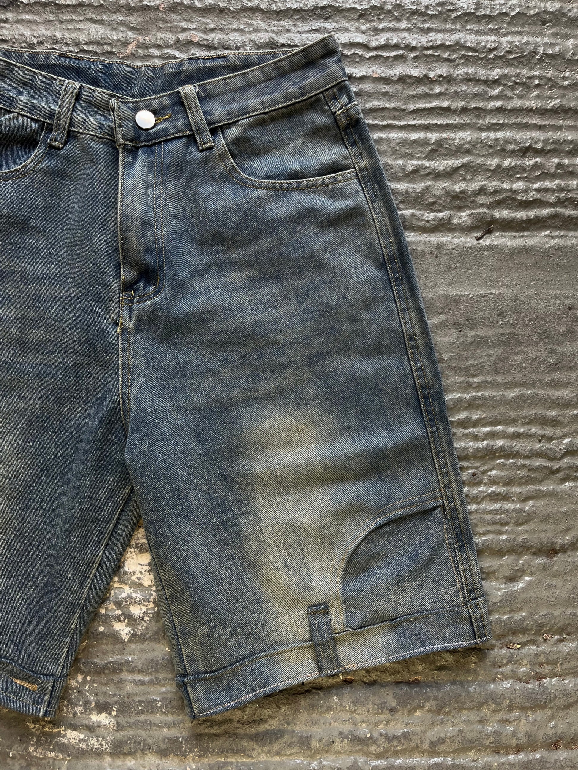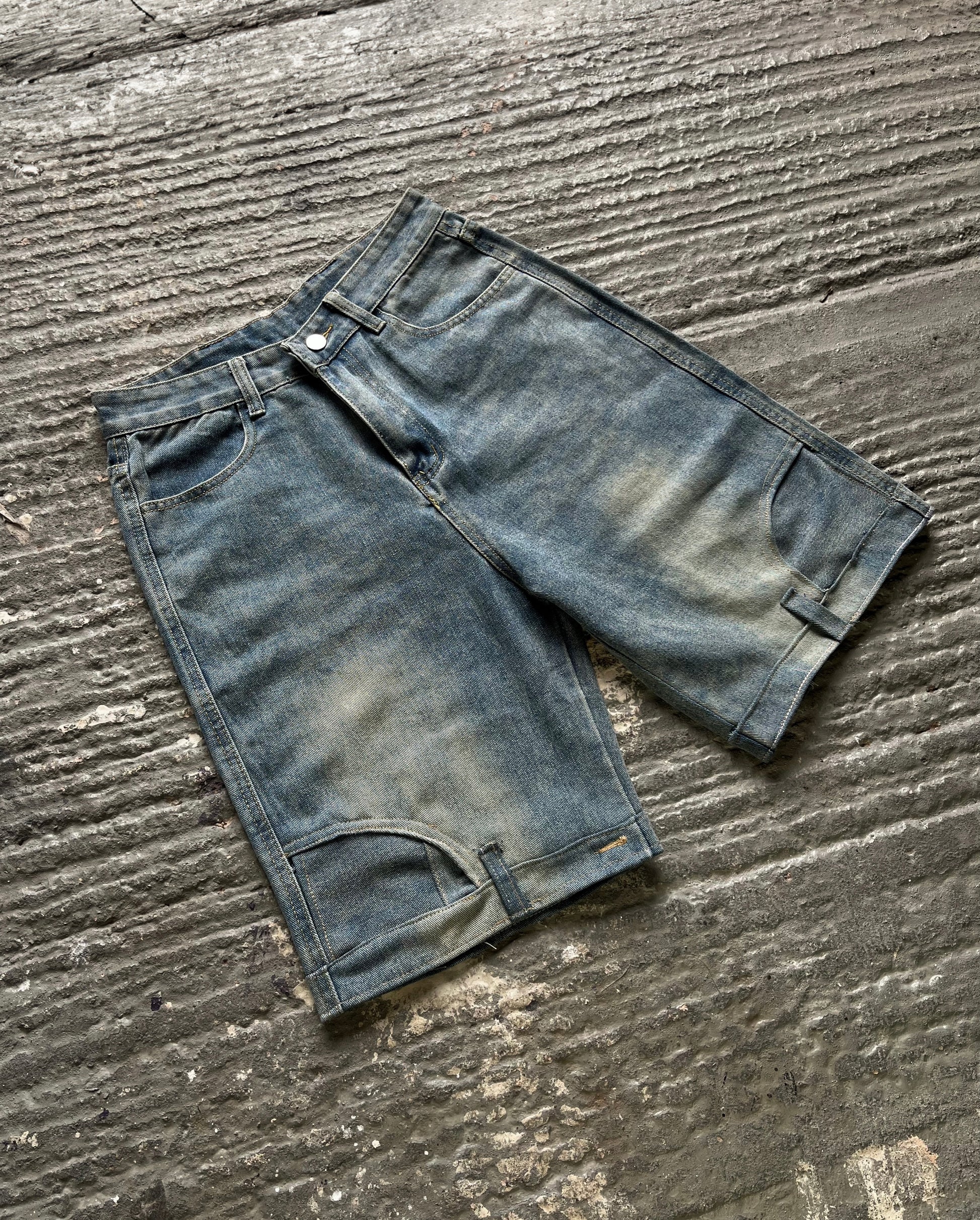 UPSIDE DOWN WASH DENIM SHORTS